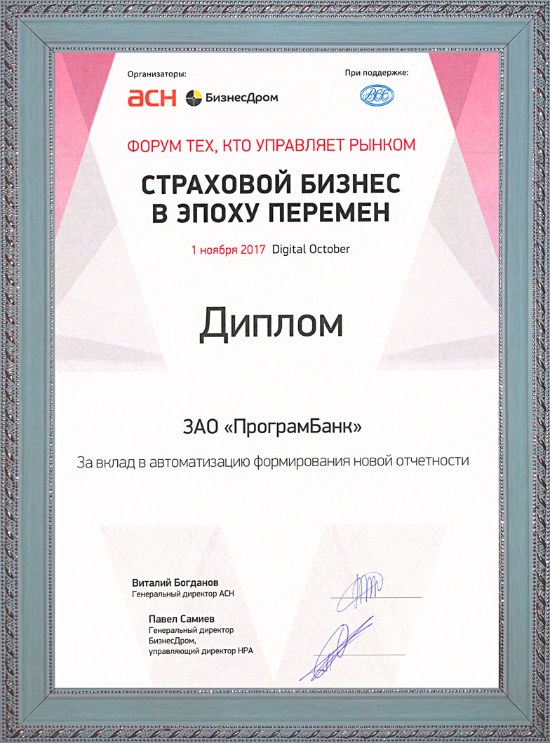 ![]() 1 ноября 2017 в Москве состоялся ежегодный Форум «Страховой бизнес в эпоху перемен», главное ежегодное мероприятие страхового рынка. | ![]() | |