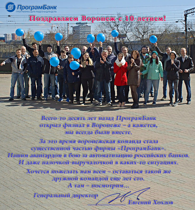 12 мая 2018 года отметил свой 10-летний юбилей первый и самый крупный филиал ПрограмБанка — Воронежский.