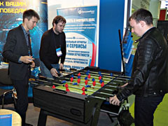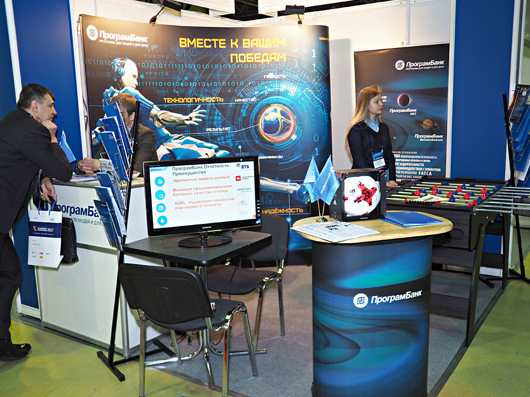 А на стенде компании посетители смогли не только подробно ознакомиться со всем спектром решений ПрограмБанка, но и подготовиться к чемпионату мира по футболу, приняв участие в первом чемпионате Форума «Вся банковская автоматизация» по настольному футболу.