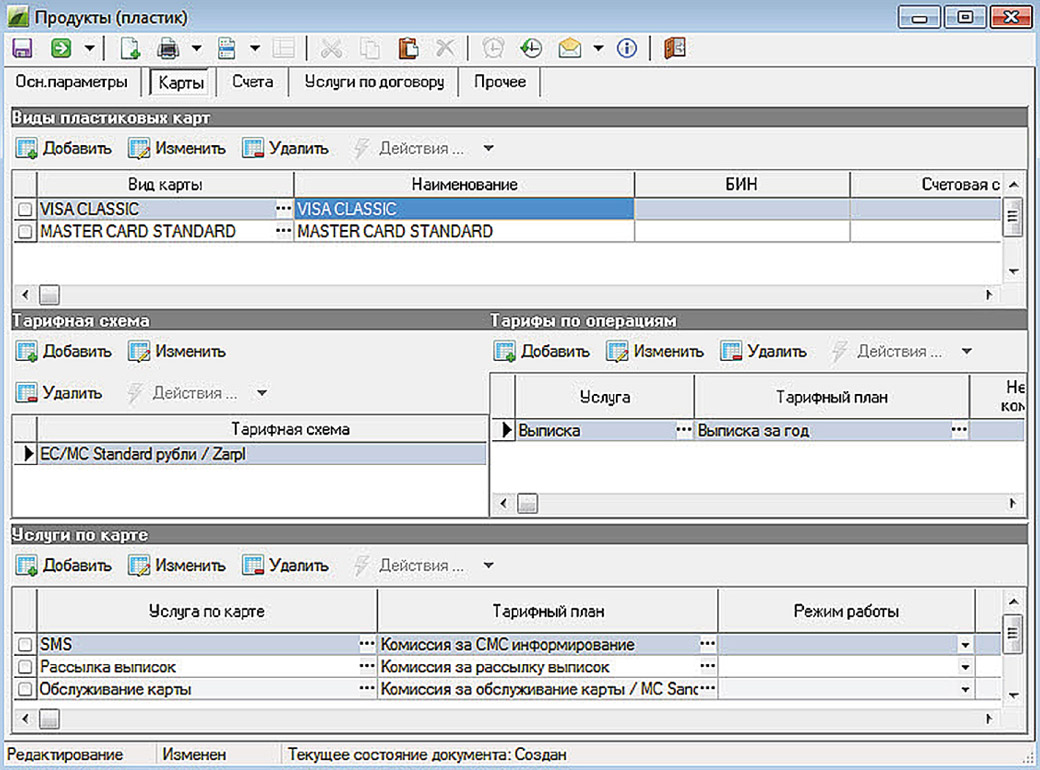 При этом настройка пластиковых продуктов имеет свою специфику, в силу того, что основными доходами банка являются комиссионные доходы, которые реализованы с помощью механизма услуг и тарифов за услуги.