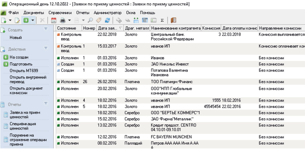 Это включает ввод, проверку, оформление и исполнение заявок, формирование распоряжений, контроль полноты и корректности заполнения документов, включая прием, выдачу слитков и перемещение слитков между хранилищами.
