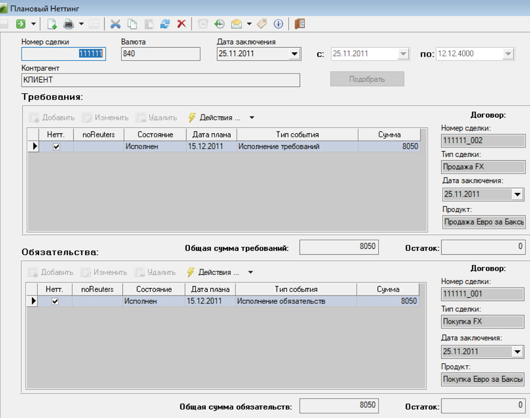 Рис. 5. Сделка неттинг
