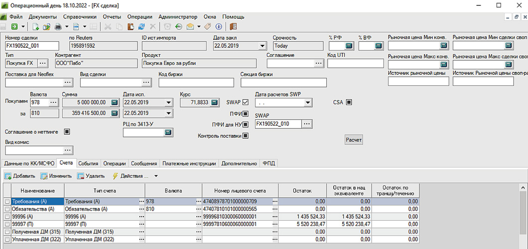 - Сделки TOD, TOM, SPOT, SWAP.