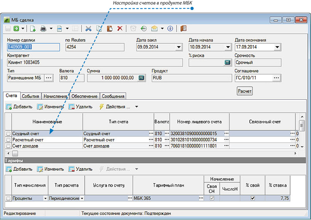 Рис. 8. Настройка счетов в продукте межбанковского кредитования