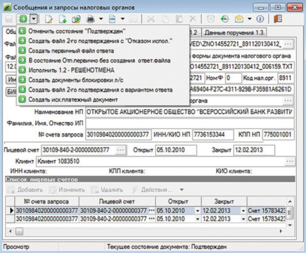 Также в соответствии с Положением 311-П идет обмен информацией с ФНС об открытых и закрытых лицевых счетах клиентов, а также выгрузка сообщений по персонализированным электронным средствам платежей (ЭСП) физических лиц.