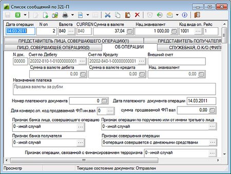 Среди реализованных вариантов отбора документов для отправки в КФМ (комитет по финансовому мониторингу):
