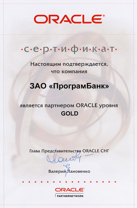 | Компания «ПрограмБанк» стала Gold партнером Oracle и получила доступ к технологическому стеку Oracle как в части продаж технологий, так и в части внедрения и разработки решений на базе продуктов Oracle. Золотые партнеры могут использовать и продавать определенные продукты из стека приложений Oracle (Database + Fusion Middleware + Applications) при соответствии необходимым критериям. Компания «ПрограмБанк» является партнером компании РДТЕХ и активно участвует в программе Oracle PartnerNetwork Specialized, ориентированной на совместное развитие партнерского бизнеса. Уровень Gold позволяет компании «ПрограмБанк» продавать все технологические продукты семейств Oracle Database и Oracle Fusion Middleware, а также дает возможность продажи бизнес-приложений. Участвуя в программе OPN Specialized, «ПрограмБанк» как партнер компании РДТЕХ и Gold партнер Oracle может претендовать на получение до 4-х специализаций при условии выполнения необходимых требований по экспертизе и бизнесу. Инфраструктура поддержки и обучения, а также скидки и льготы от Oracle существенно расширяются. |