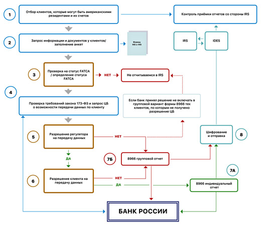 - Отчетность FATCA (отчет по форме 8966 в Налоговую службу США (IRS)).