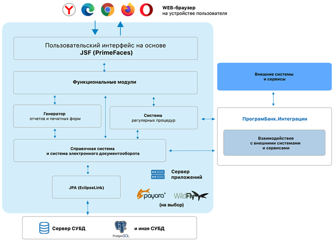 Помимо этого, функционал ПК включает в себя автоматизацию взаимодействия с автоматизированной банковской системой и иными внутренними информационными системами заказчика.